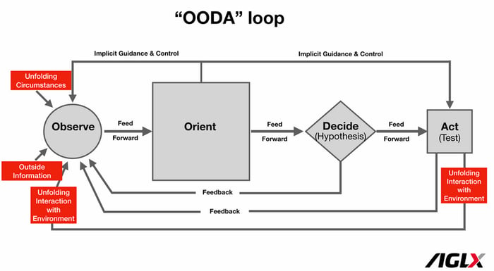 The components found in the OODA loop’s Orientation step and three external feedback links represent constraints.