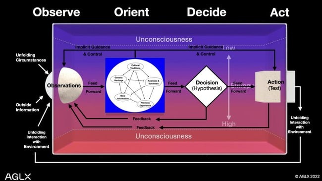 Our sensory organs “observe” or interact with the outside world and send sensory signals to a generative model known in the OODA loop as “Orientation.”