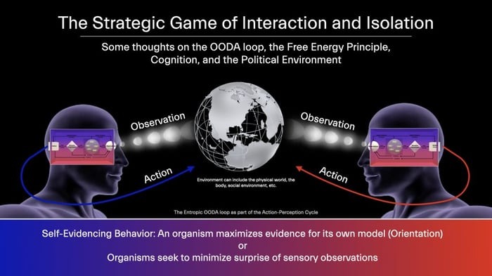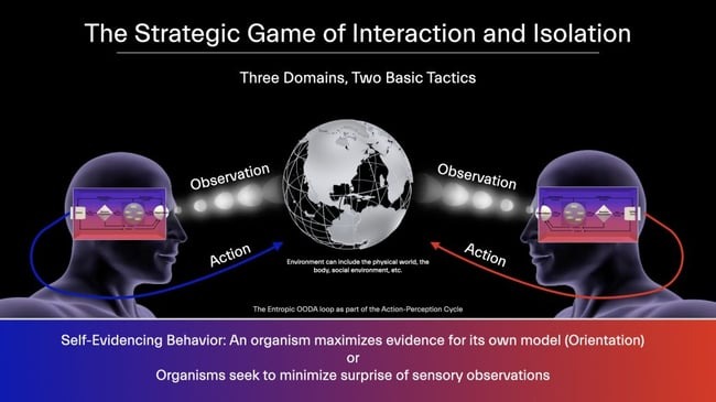 The object in the Strategic Game is to minimize your own surprise while creating mismatches in the environment that generate surprise—”uncertainty, confusion, disorder, panic, chaos” in your adversaries’ OODA loops (Internal States) “to shatter cohesion, produce paralysis and bring about collapse.” Yes, this is a very dangerous game that does not end well—it ends in entropic erosion (death)—unless we all recognize it is being played and that the majority of us are only pawns. This is why having a basic understanding of the OODA loop and FEP is an imperative.