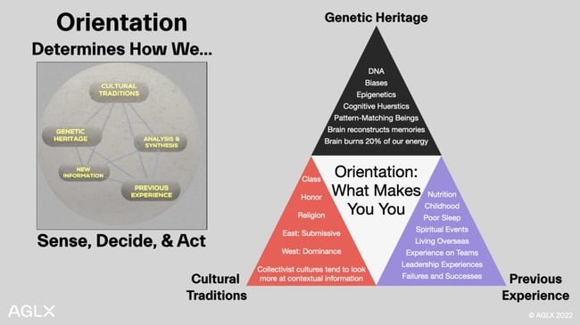Realize that we all view the world differently based off of the interplay of our Cultural Traditions, Genetic Heritage, and Previous Experiences.