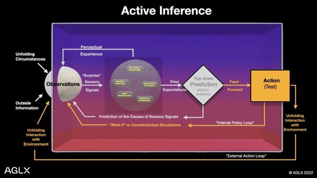 Key Point: Sensory signals can only be changed through action—external action and internal action loops. This adaptive control from the two Action loops combined with the perception loop are known as Active Inference.