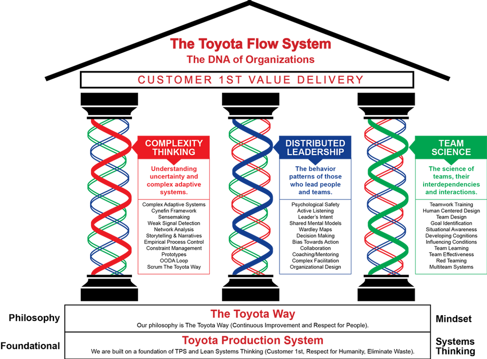 The Flow System™ is a holistic FLOW based approach to delivering Customer 1st Value. It is built on a foundation of the Toyota Production System (TPS/LEAN) and the new Triple Helix of Flow creating the DNA of Organizations.