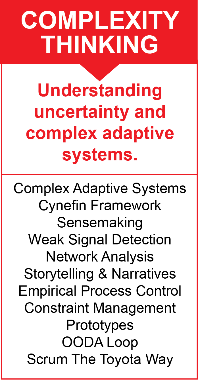 Complexity thinking is a new form of thinking to aid in understanding uncertainty and complex adaptive systems.